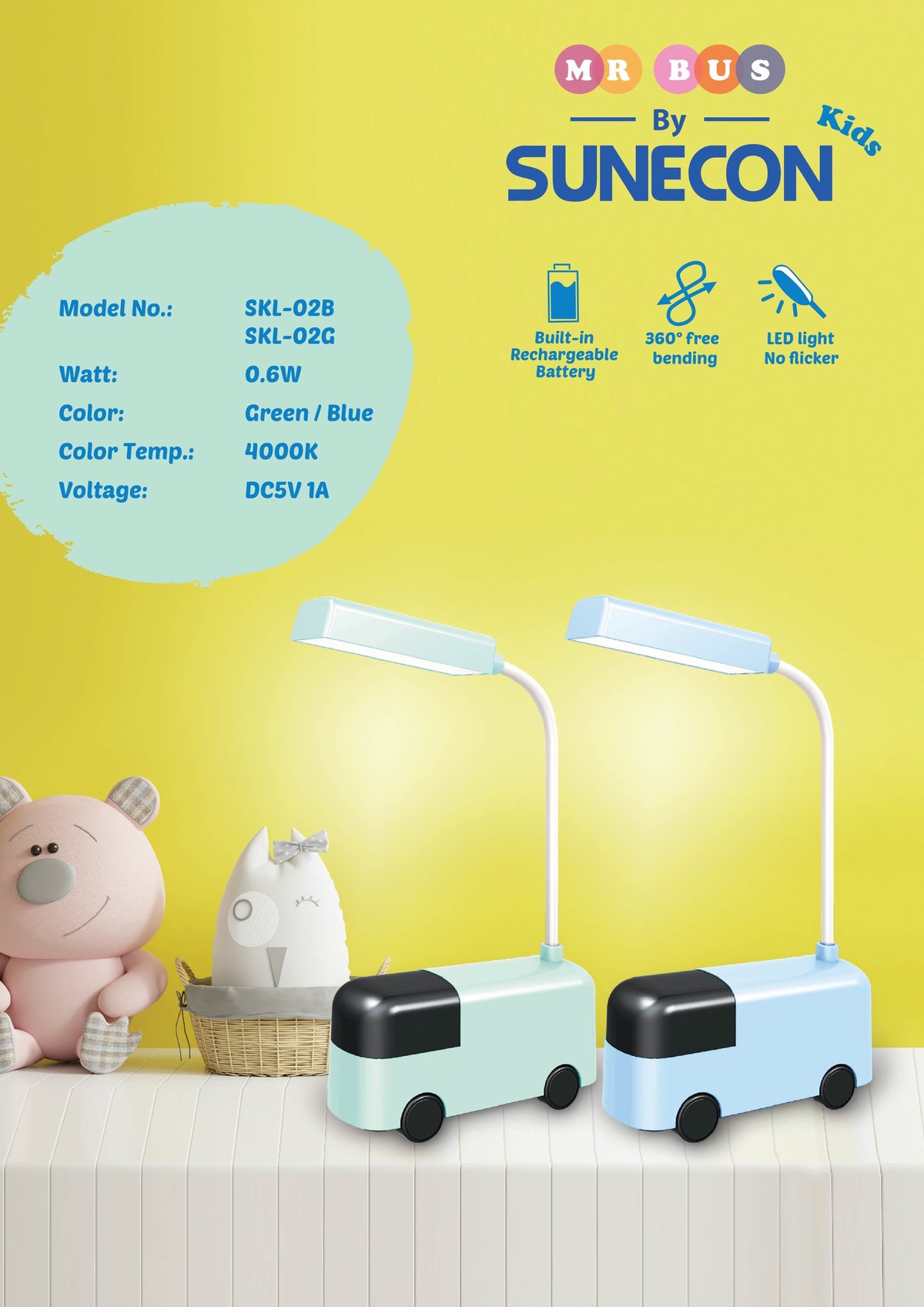 SUNECON SKL-02 MR BUS LED兒童玩具巴士造型檯燈